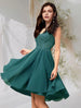A-Linie Cocktailkleider Flirty Dress Homecoming Abschlussfeier Kurz/Mini Ärmellos V-Ausschnitt Chiffon Rückenfrei mit Perlenbesatz Spitzeneinsatz