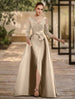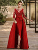 A-Linie Abendkleid mit offenem Rücken, formelle Hochzeitsgast-Kleidung, bodenlang, 3/4-Ärmel, Rundhalsausschnitt, Spitze mit Schlitz, Riemchen