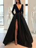 A-Linie Abendkleid Partykleid Elegantes Kleid Formell Weihnachten Bodenlang Langarm Herzausschnitt Herbst Hochzeitsgast Satin mit Schärpe/Band Schlitz