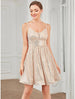 A-Linie Homecoming-Kleider Vintage-Kleid Homecoming-Partykleidung Kurz/Mini Ärmellos V-Ausschnitt Rosa Paillettenkleid mit Glitzerpailletten