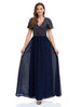 A-Linie Meerjungfrau Partykleid Abendkleid Sparkle & Shine Kleid Weihnachten Hochzeitsgast Bodenlang Kurzarm V-Ausschnitt Pailletten mit Pailletten