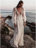 Strand Offener Rücken Boho Brautkleider A-Linie V-Ausschnitt Langarm Sweep/Pinsel Schleppe Pailletten Brautkleider Mit Falten