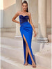 Blaues, oranges, grün-blaues A-Linien-Abendkleid mit Glitzer und Glanz, formelles, bodenlanges, ärmelloses Sweetheart-Stretch-Gewebe mit Glitzer-Pailletten-Schlitz, Herbsthochzeit