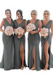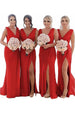 Brautjungfernkleid Rostrot Etui Chiffon gerüscht lang mit Schlitz