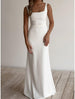 Verlobungs-Hochzeitskleider, leger, Etui-Linie, U-Ausschnitt, ärmellos, bodenlang, Stretch-Stoff, Brautanzüge, Brautkleider mit Volltonfarbe