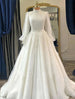 Verlobung Vintage 1940er / 1950er Jahre Formelle Herbsthochzeitskleider Ballkleid Hoher Hals Langarm Hofschleppe Spitzenbrautkleider mit Faltenapplikationen Sommerhochzeitsfeier