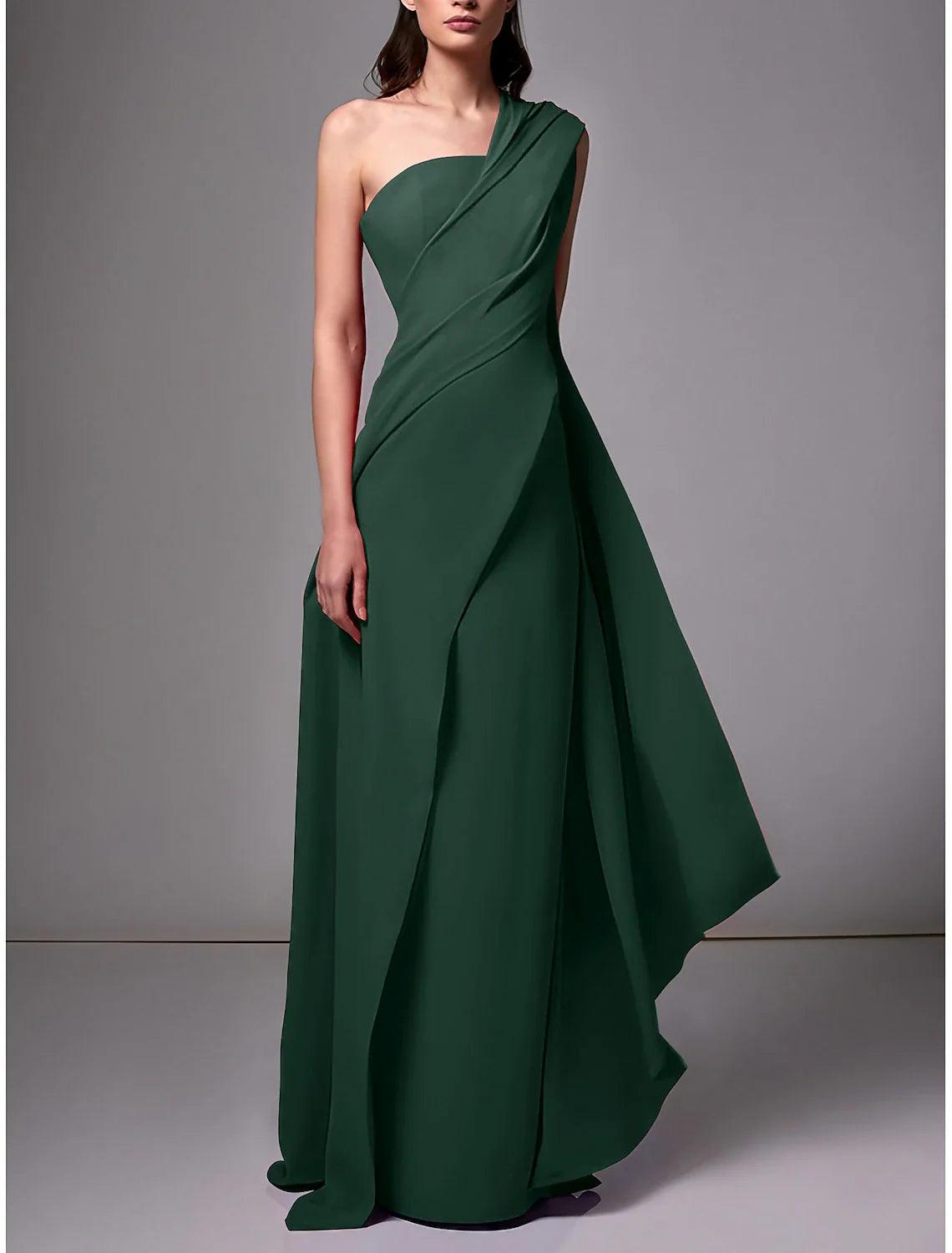 Abendkleid für formelle Hochzeiten, elegantes, formelles, bodenlanges, ärmelloses, einschultriges Chiffon-Kleid mit Stretch und Rüschen