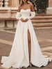 Hall Casual Brautkleider A-Linie Off Shoulder Langarm Hofschleppe Satin Brautkleider mit Schlitz vorne Volltonfarbe