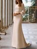Saal Offener Rücken Lässige Brautkleider Meerjungfrau/Trompete Rundhalsausschnitt Lange Ärmel Sweep/Pinselschleppe Stretchstoff Brautkleider Mit Perlenstickerei Sommer Herbst Hochzeitsfeier