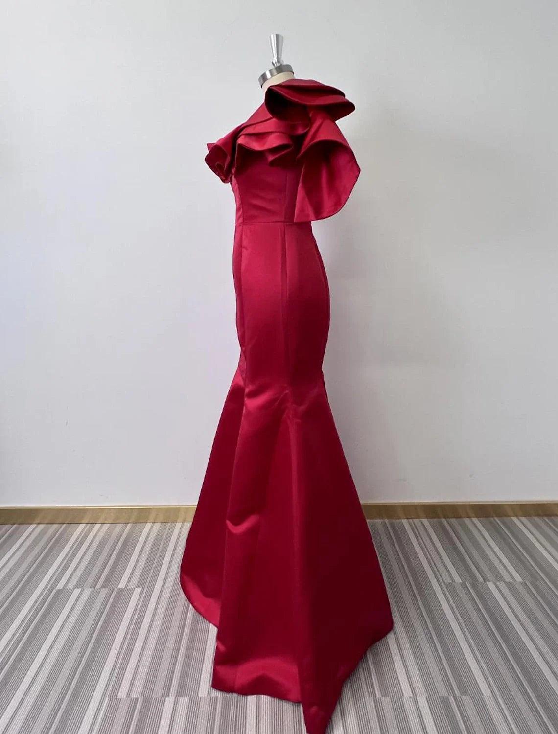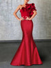 Meerjungfrau Schwarzes Kleid Weihnachten Rot Grünes Kleid Abendkleid Korsettkleid Weihnachten Rot Grünes Kleid Formelle Hochzeitsgast-Bodenlänge Ärmellos Einschulter Taft mit Rüschen Schulterblume
