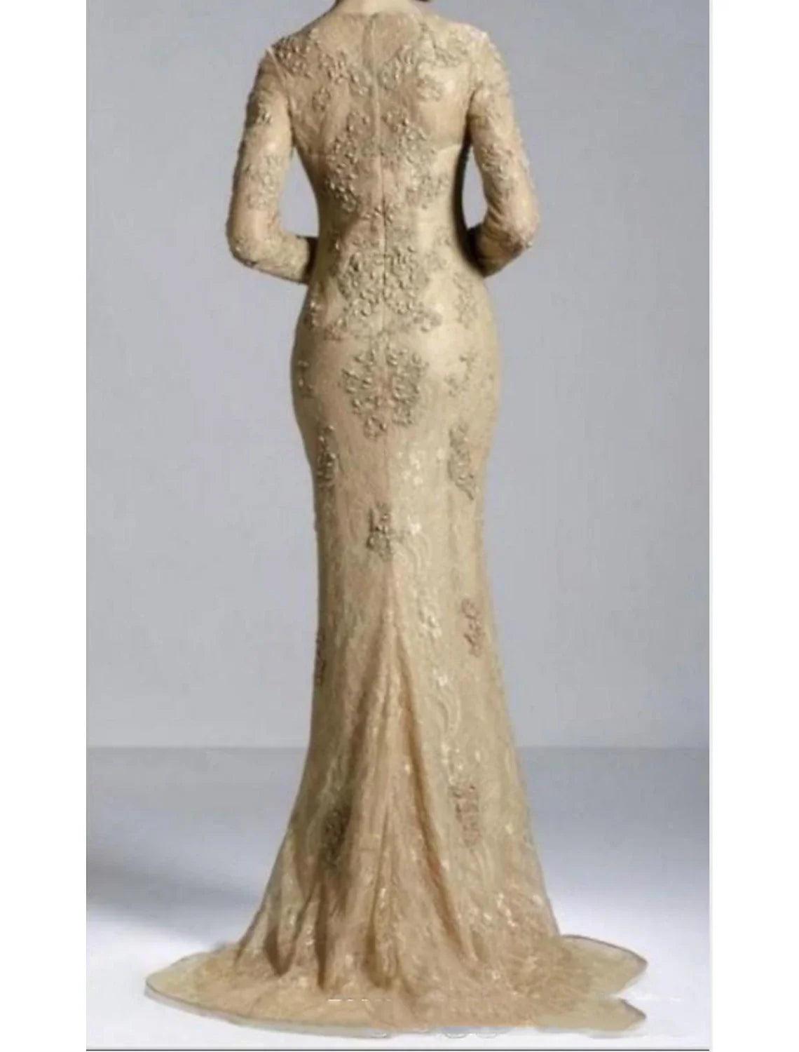 Meerjungfrau Partykleid Abendkleid Luxuriöses Weihnachtskleid Verlobungskleid Formeller Abend Sweep/Pinselschleppe Langarm Rundhalsausschnitt Herbst Hochzeitsgast Spitze mit Perlenapplikationen