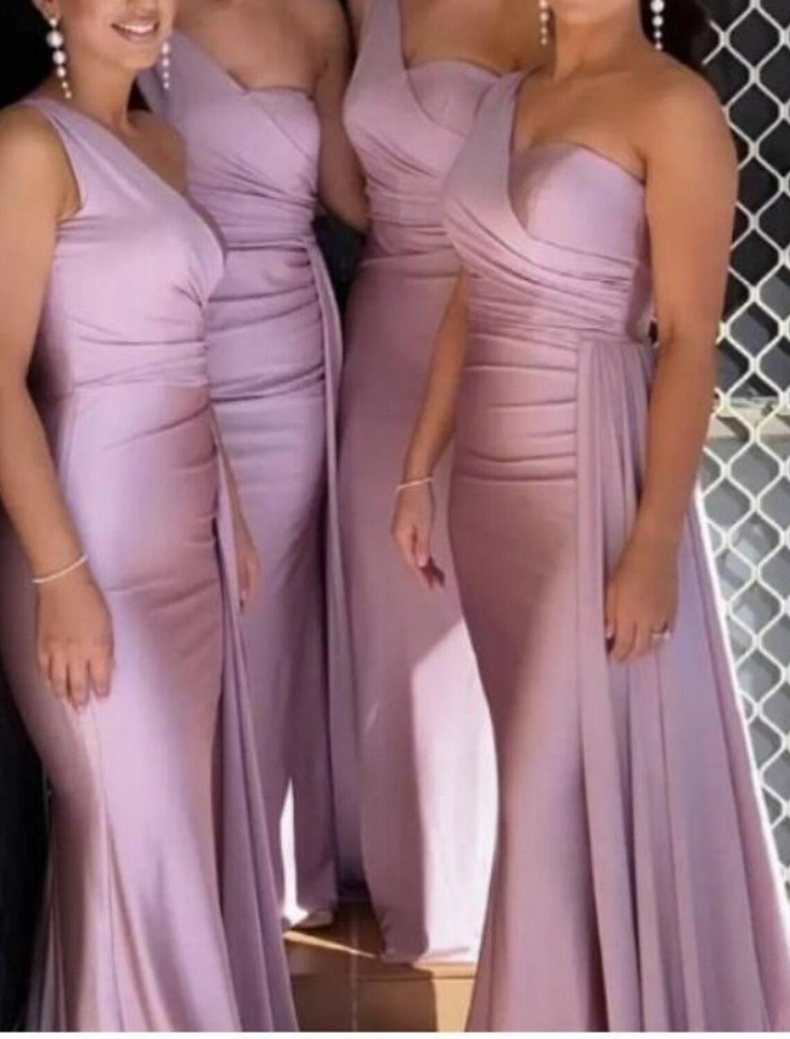Meerjungfrau / Trompete Brautjungfernkleid Ein-Schulter Ärmellos Elegant Sweep / Pinselschleppe Elasthan mit Drapierung / Volltonfarbe