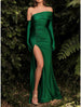 Meerjungfrau / Trompete Brautjungfernkleid V-Ausschnitt Langarm Elegant Hofschleppe Chiffon mit Rüschen / Volltonfarbe
