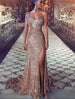 Meerjungfrau/Trompete Abendkleider Sexy Sparkle & Shine Kleid Abschlussball Formeller Abend Hofschleppe Eine Schulter Ärmellos Pailletten mit Paillettenschlitz