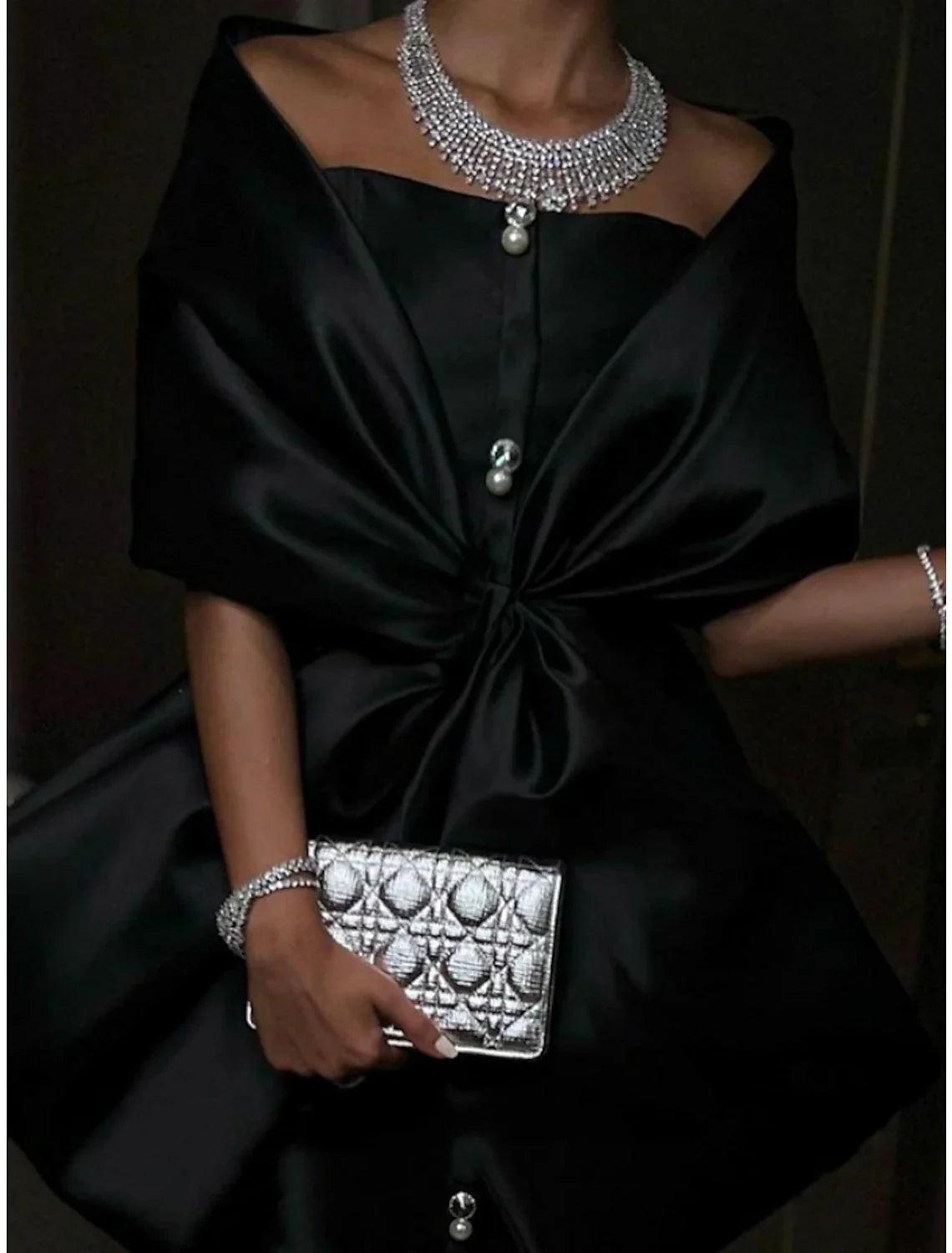 Meerjungfrau / Trompete Abendkleid Schwarzes Kleid Elegantes Kleid Formelle Hofschleppe Halbarm Schulterfrei Satin mit Schleife(n) Schlitz