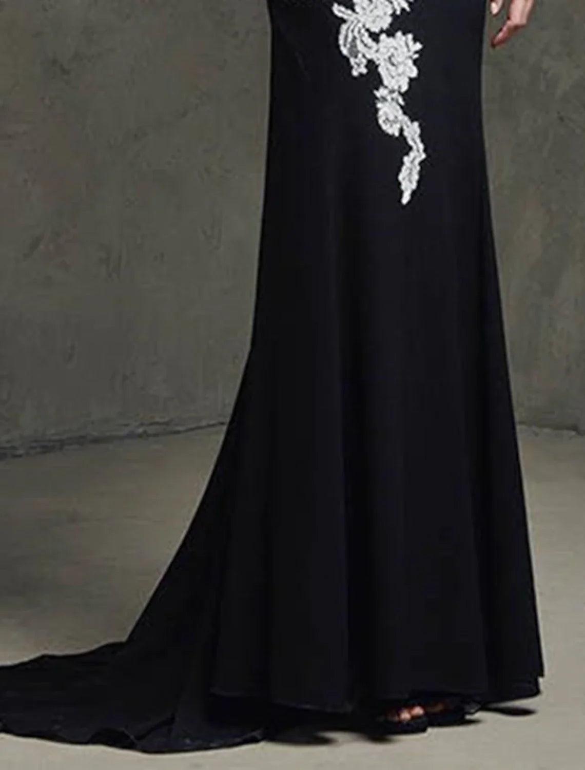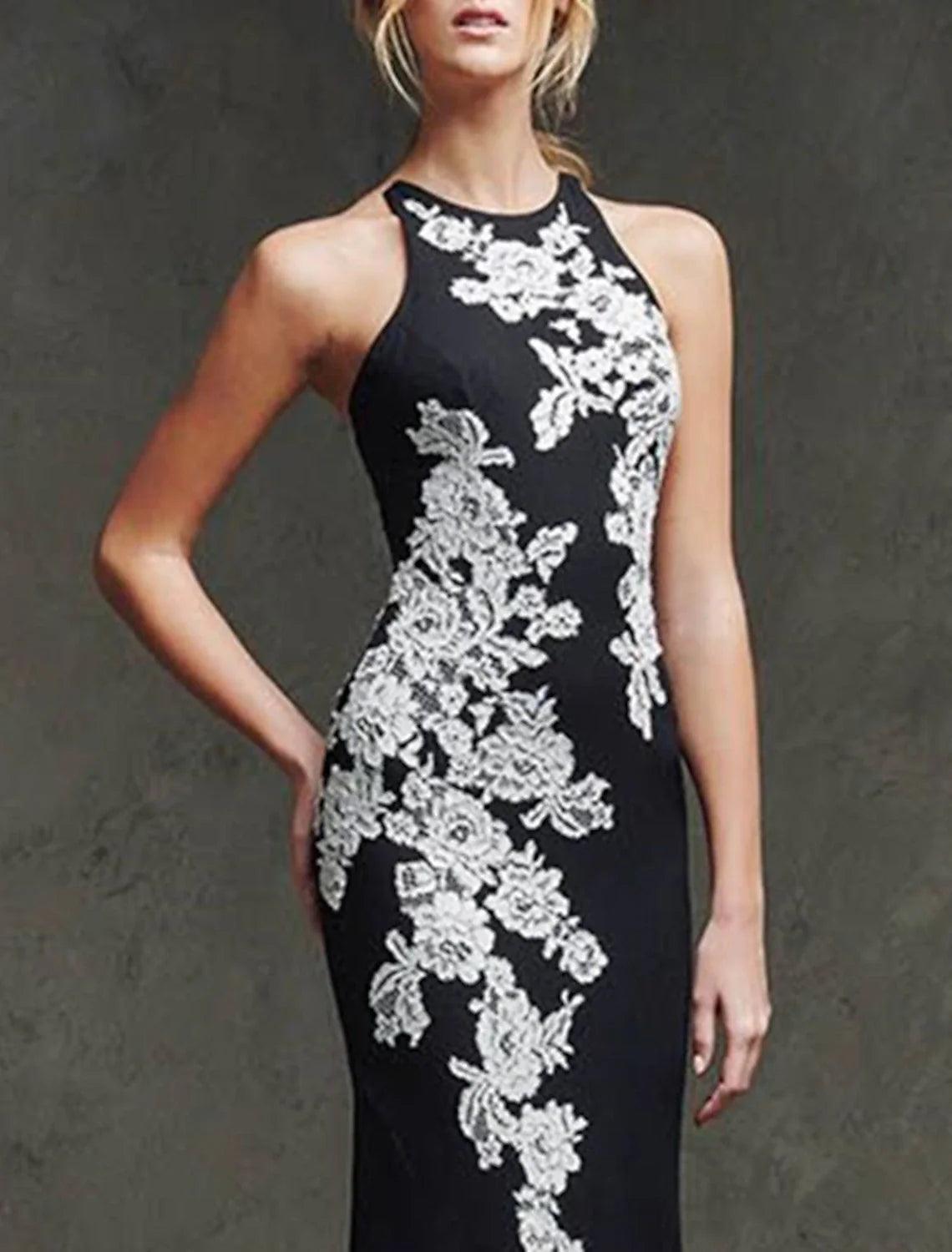 Meerjungfrau/Trompete Abendkleid Farbblock Kleid Formeller Hochzeitsgast Sweep/Pinselzug Ärmellos Schmuckhals Spitze mit Applikationen