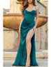 Meerjungfrau/Trompete Abendkleid Korsett Kleid Cocktail Party Ball Bodenlang Ärmellos Wasserfallausschnitt Satin mit Rüschen