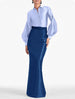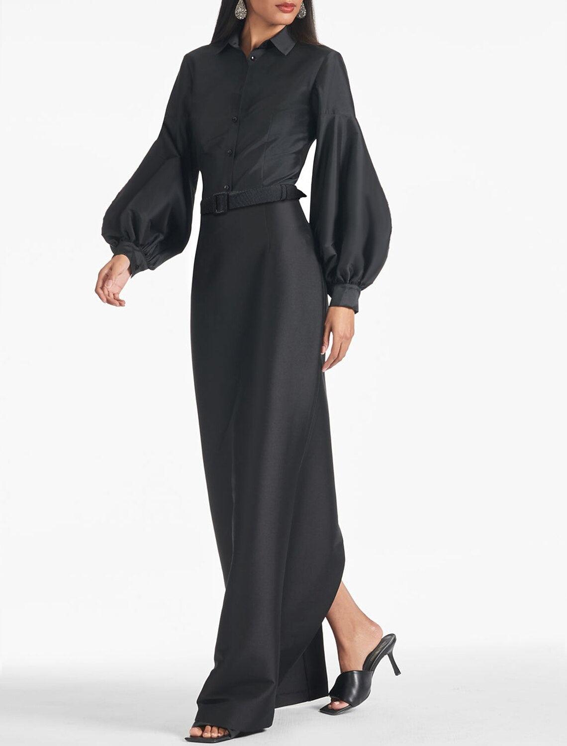 Meerjungfrau/Trompete Abendkleid Elegantes schwarzes Kleid Formal Herbst Bodenlang Langarm Hemdkragen Satin mit Riemchen