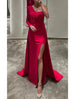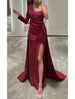 Meerjungfrau/Trompete Abendkleid, elegantes Kleid, formell, Weihnachten, bodenlang, lange Ärmel, eine Schulter, Herbst, Hochzeitsgast, Stretchstoff mit gerüschtem Schlitz