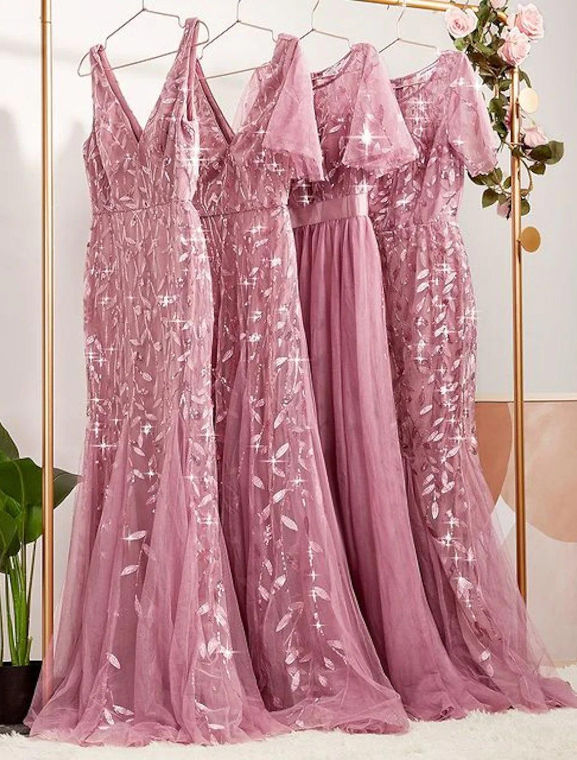 Dies ist ein bodenlanges Kleid. Bitte messen Sie unbedingt