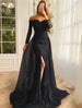 Meerjungfrau/Trompete Abendkleid Blumenkleid Formelle Hochzeit Sweep/Pinselschleppe Langarm Schulterfrei Herbst Hochzeitsempfang Chiffon mit Schlitz Applikationen