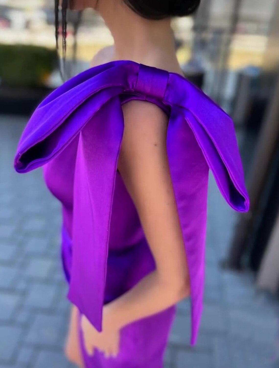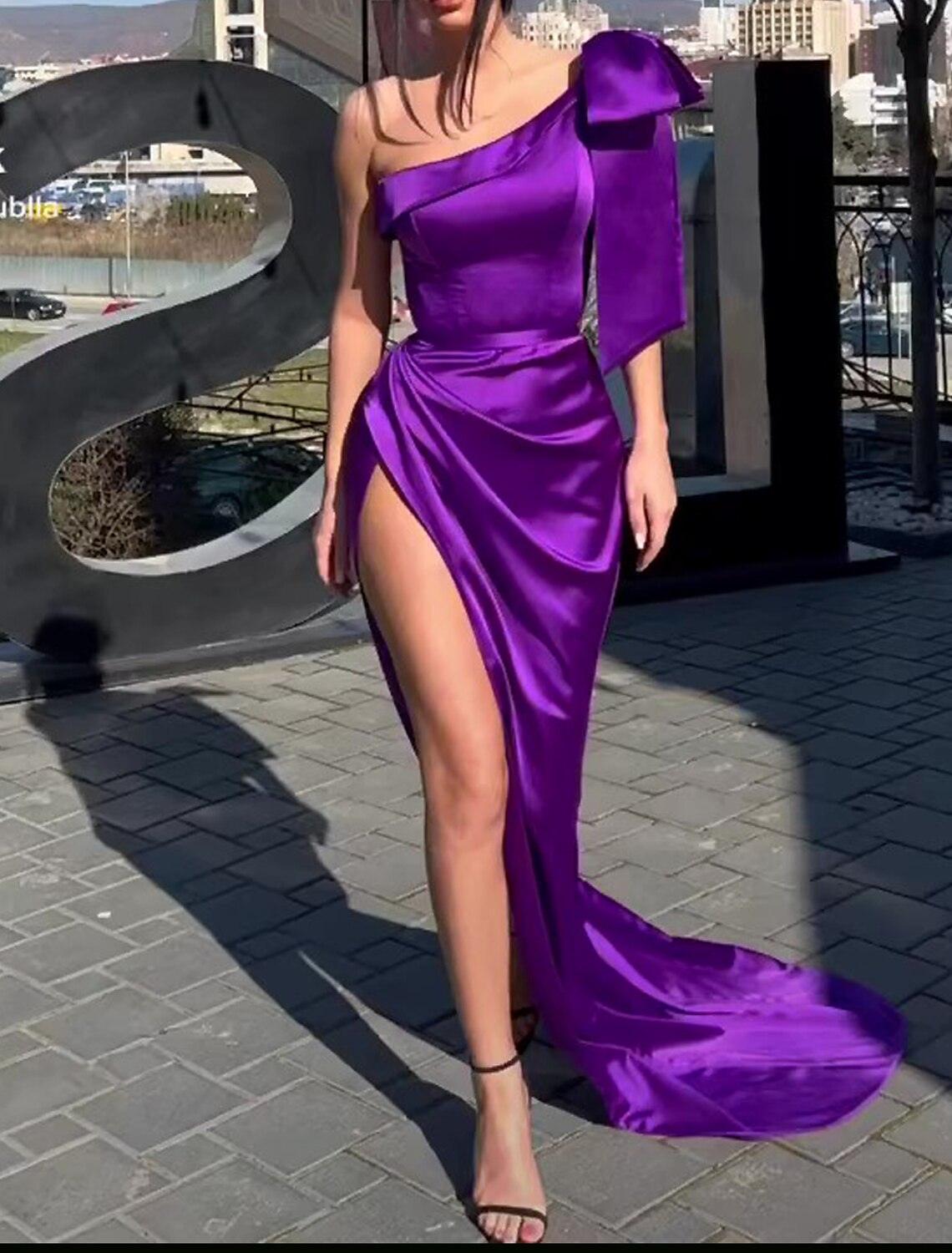 Abendkleid im Meerjungfrau-/Trompeten-Stil, hoher Schlitz, formeller Abschlussball, Schleppe, ärmellos, ein Schulterträger, Satin mit Schleife(n), Schlitz