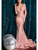Abendkleid im Meerjungfrau-/Trompeten-Stil, Reformation Amante, Hochzeitsgast, formeller Abend, Hofschleppe, lange Ärmel, V-Ausschnitt, Satin mit glatter, reiner Farbe