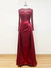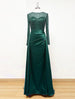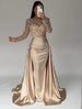 Meerjungfrau/Trompete Abendkleid Sparkle & Shine Kleid Karneval Maskerade Bodenlang Langarm Illusion Hals Herbst Hochzeit Empfang Satin mit Perlen Überrock