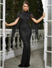 Meerjungfrau/Trompete Abendkleid Sparkle & Shine Kleid Formal Herbst Bodenlang Ärmellos Hoher Hals Pailletten mit Glitzer Falten
