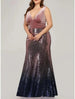 Meerjungfrau/Trompete Abendkleid Sparkle & Shine Kleid Formal Herbst Bodenlang Ärmellos V-Ausschnitt Pailletten mit Glitzer Falten