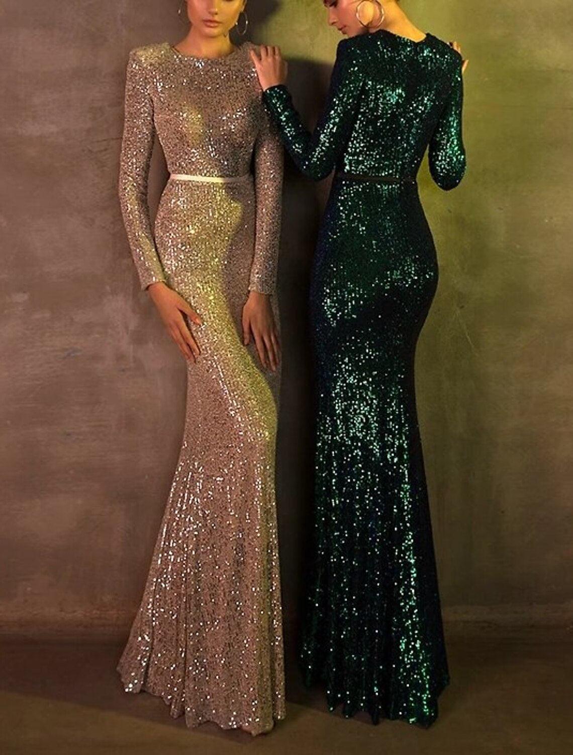 Meerjungfrau/Trompete Abendkleid Sparkle & Shine Kleid Party Wear Hochzeit Party Bodenlang Langarm Juwel Hals Spitze mit Pailletten