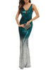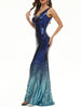 Meerjungfrau/Trompete Abendkleid Sparkle & Shine Kleid Hochzeitsgast Ballkleid Bodenlang Ärmellos V-Ausschnitt Polyester mit Pailletten Schlitz