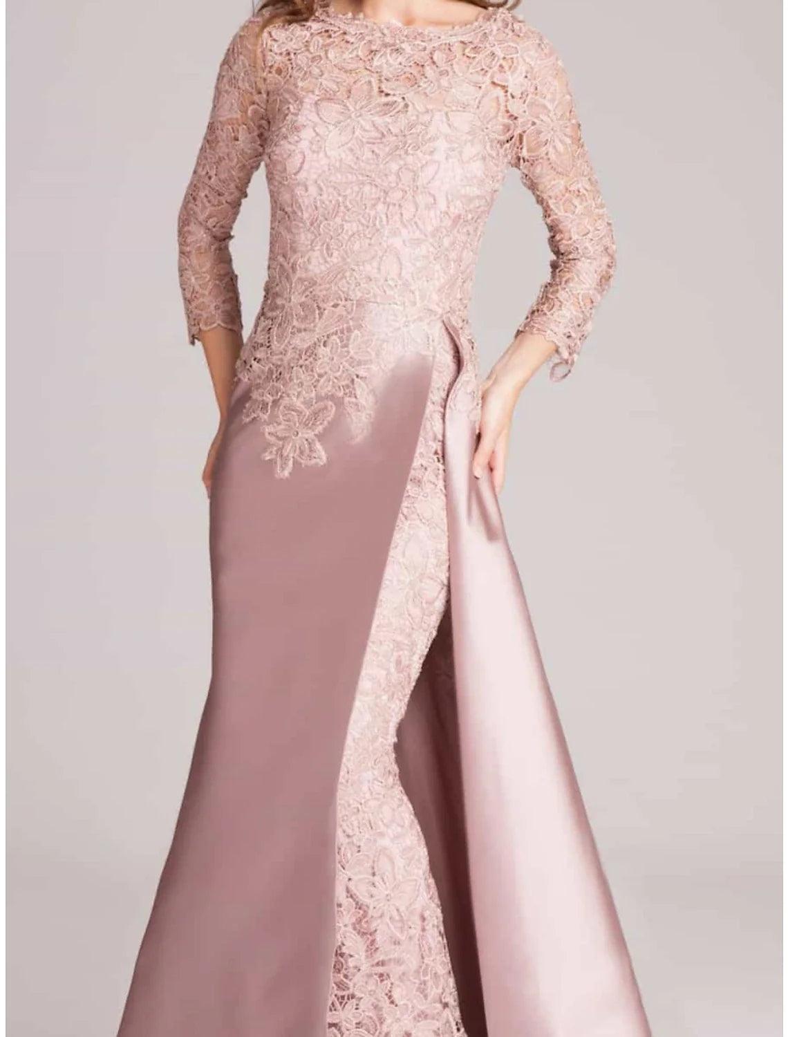 Meerjungfrau/Trompete Mutter der Braut Kleid Hochzeitsgast Elegante U-Ausschnitt Bodenlang Satin Lange Ärmel mit Spitze Schlitz Vorne