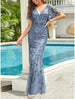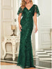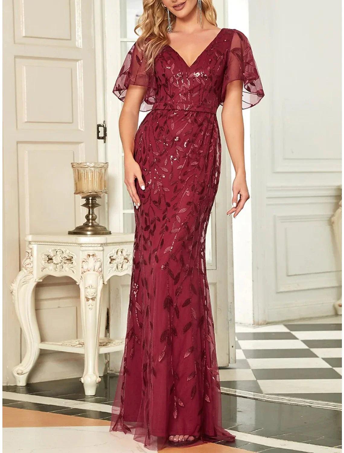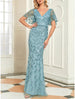 Meerjungfrau/Trompete Mutter der Braut Kleid Hochzeitsgast Sparkle & Shine Elegant V-Ausschnitt Bodenlang Pailletten Kurzarm mit Falten Pailletten