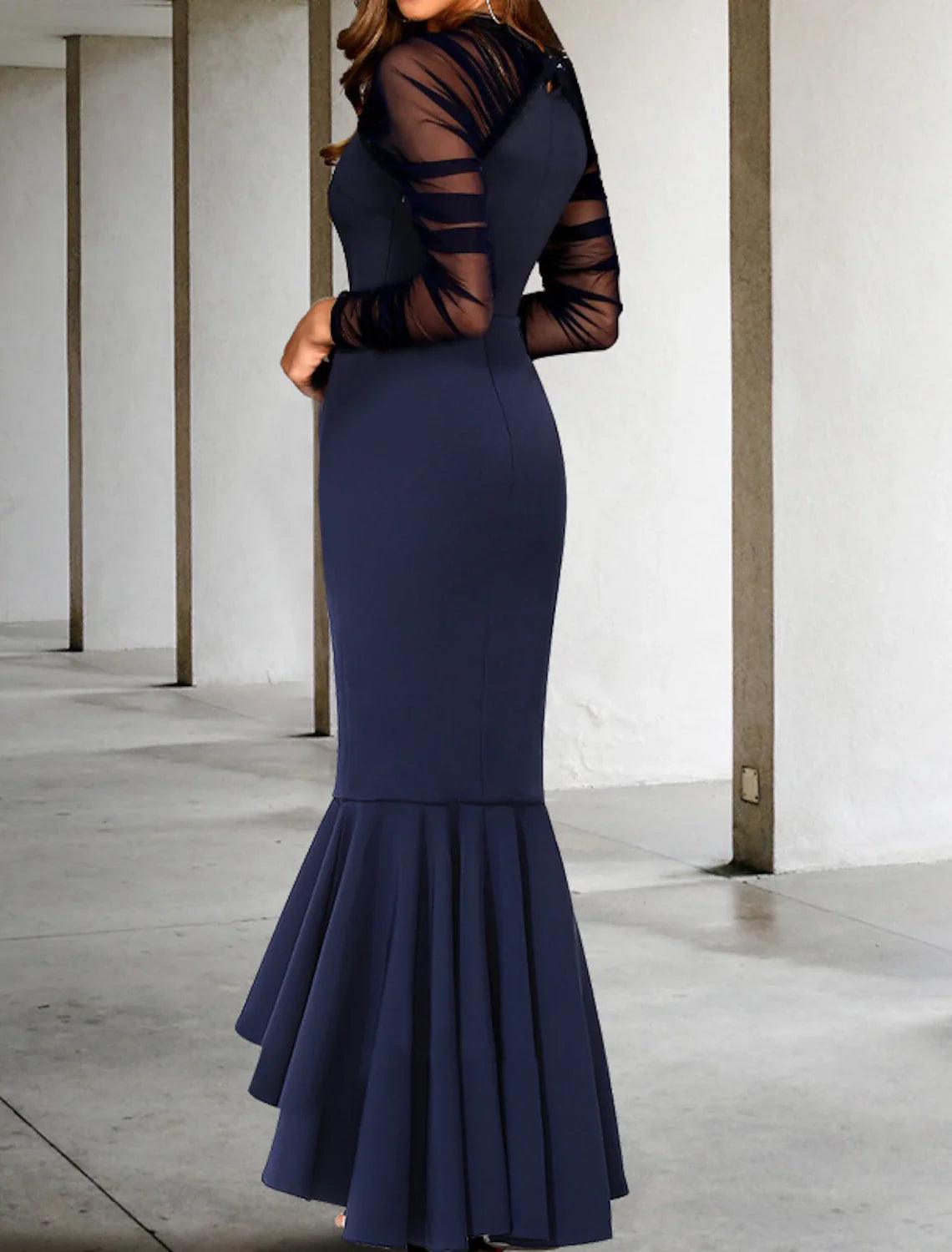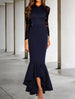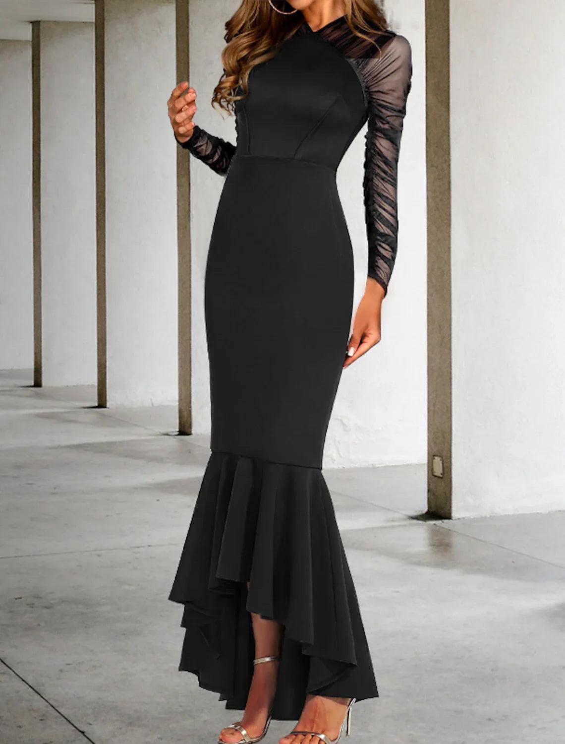 Meerjungfrau/Trompete Ballkleider Elegantes Kleid Formeller Hochzeitsgast Asymmetrisch Langarm V-Ausschnitt Stretchstoff mit gerafften Rüschen