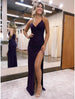 Meerjungfrau/Trompete Ballkleider Glitzerndes Kleid Formale Hochzeit Party Bodenlang Ärmellos V-Ausschnitt Satin Rückenfrei mit Glitzer