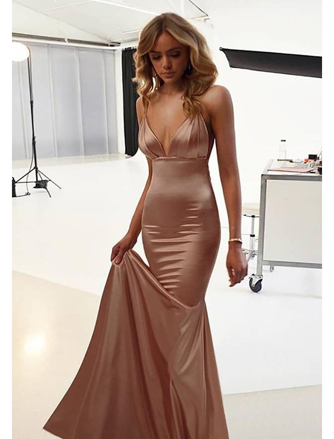 Meerjungfrau/Trompete Hochzeitsgastkleider Sexy Kleid Abschlussball Black Tie Gala Bodenlang Ärmellos Spaghettiträger Baumwolle Rückenfrei mit Rüschen