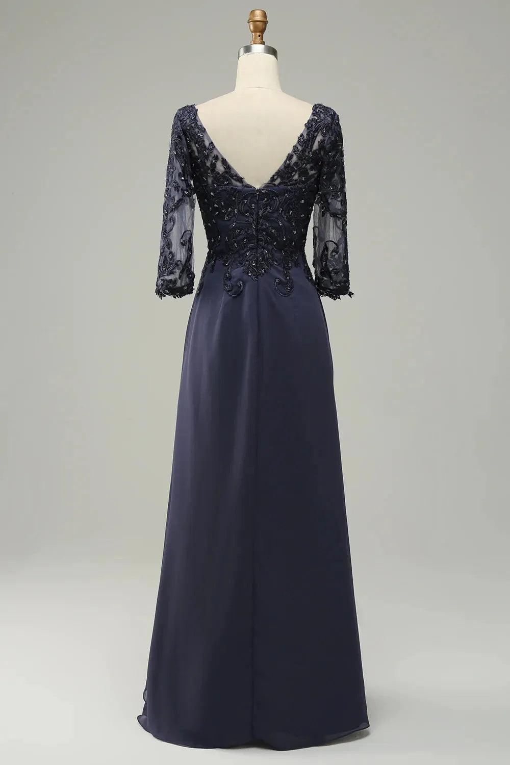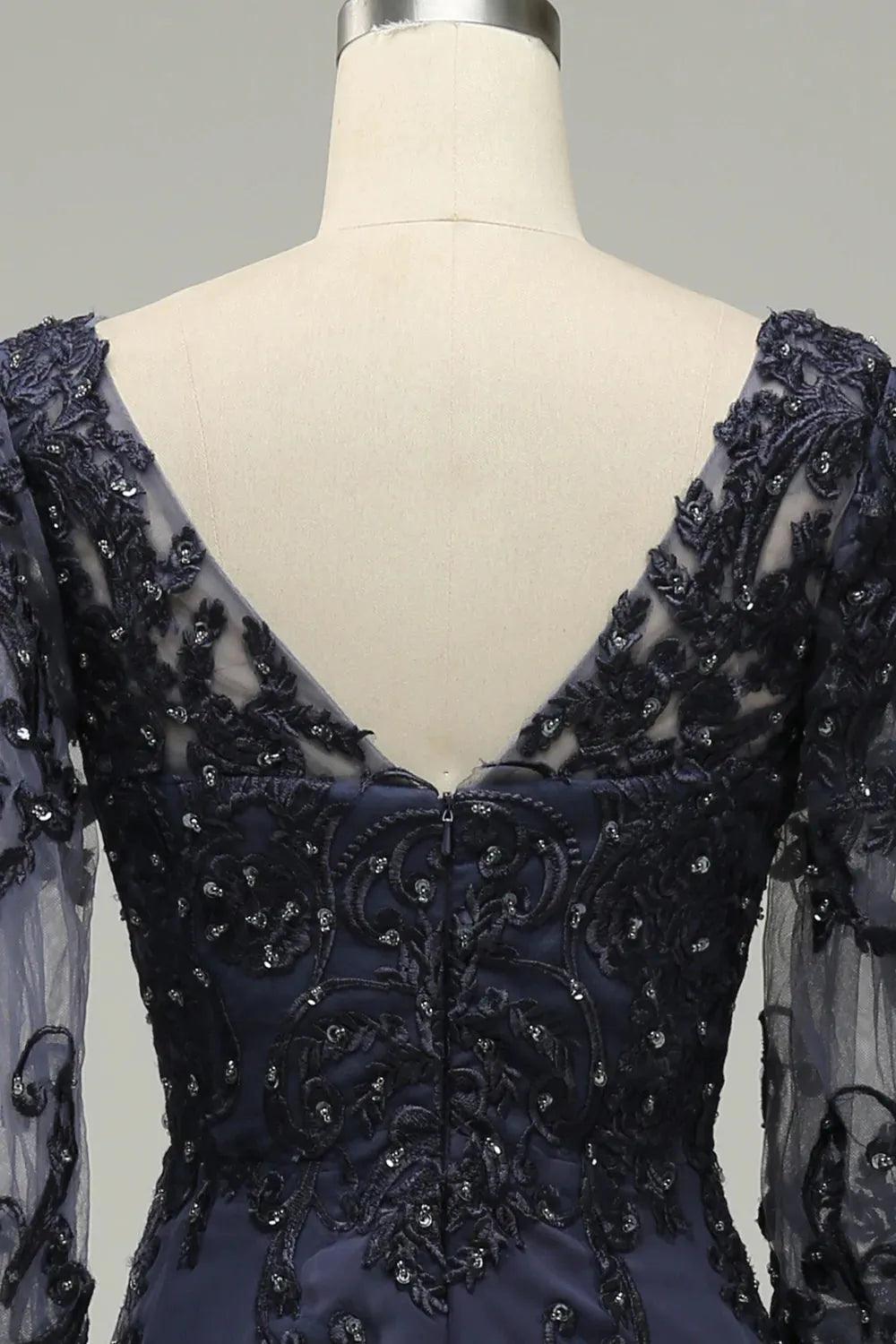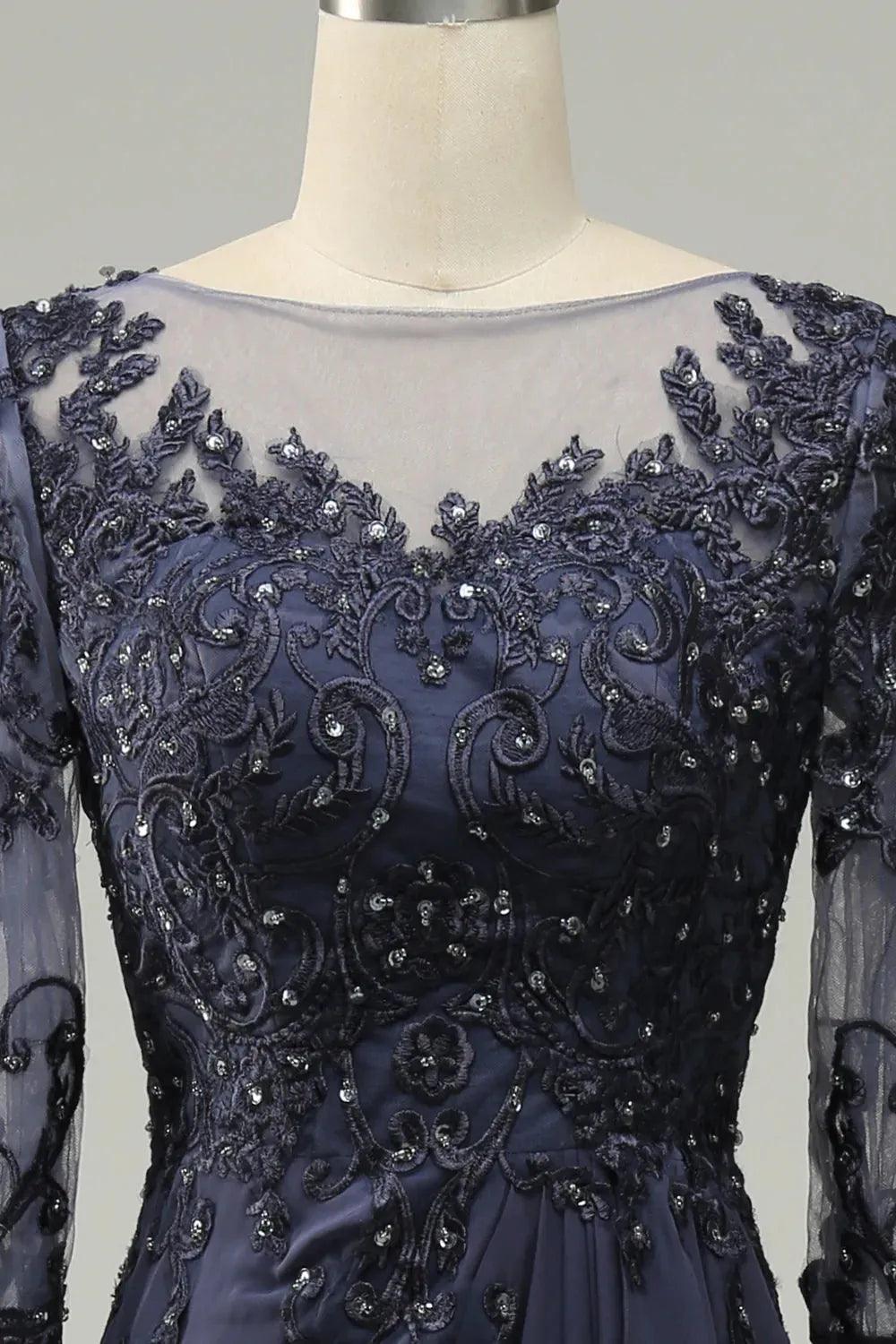 Kleid für die Brautmutter mit langen Ärmeln und Applikationen