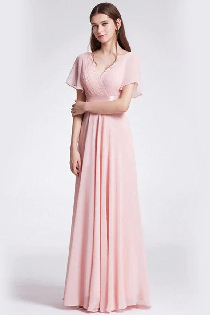 Quintina V-Ausschnitt Kurze Ärmel Bodenlang Natürliche Taille A-Linie/Prinzessin Chiffon Brautjungfernkleider