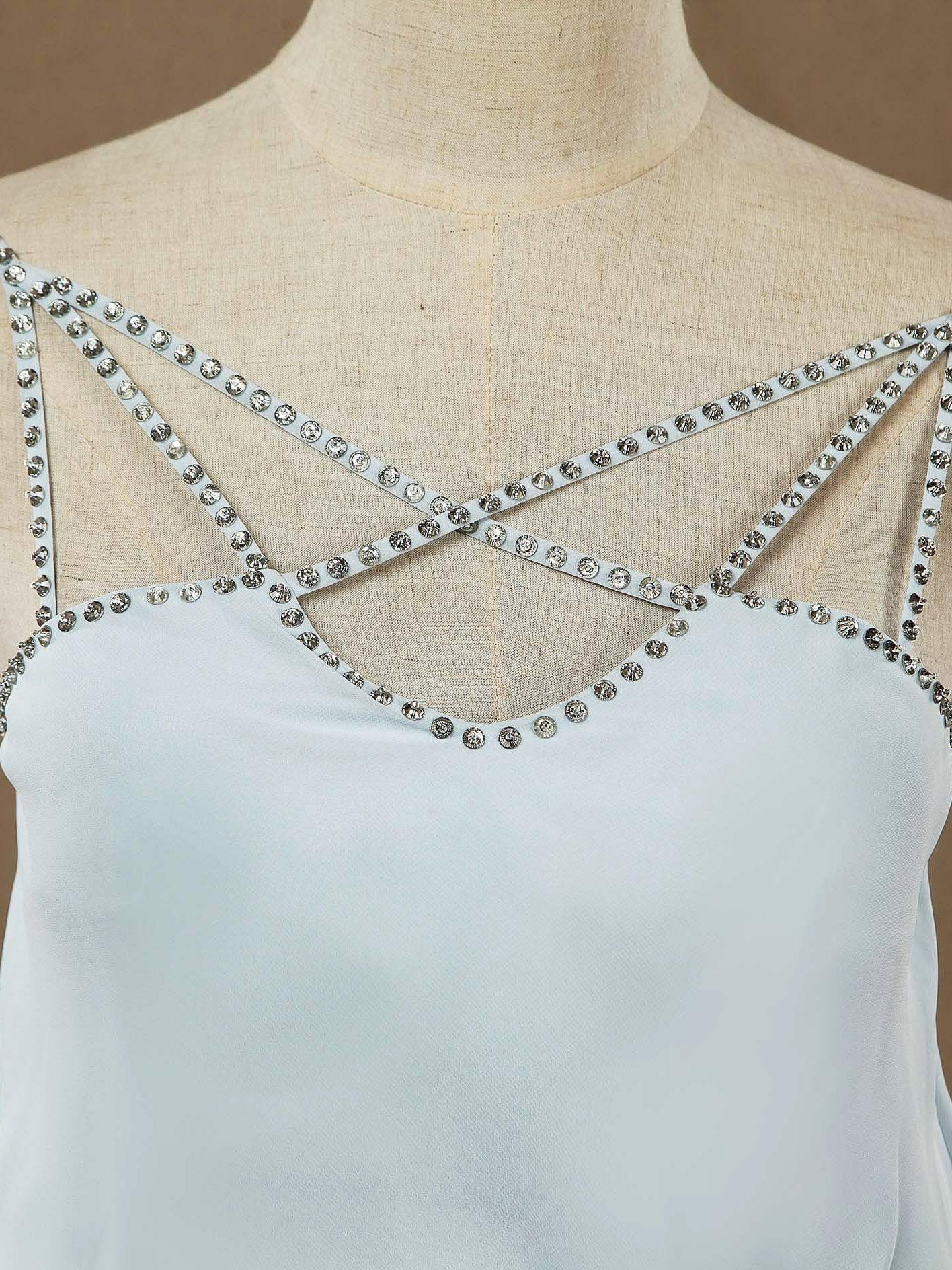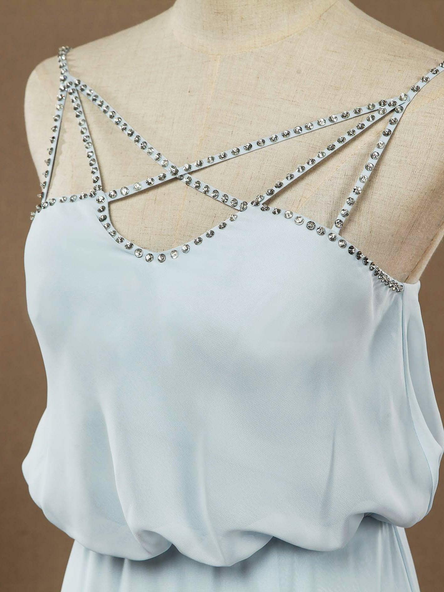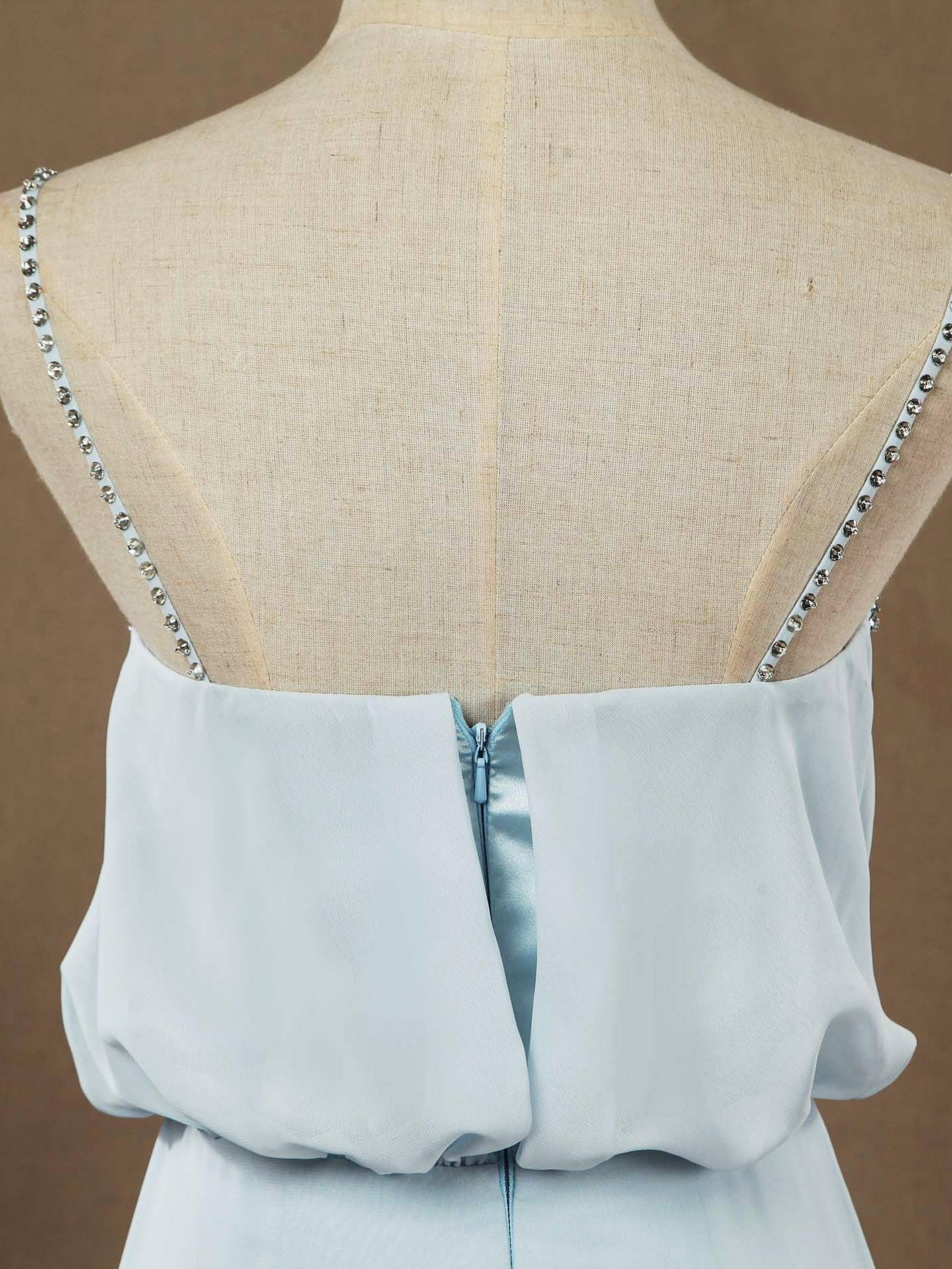 Etui-/Säulenkleid, Spaghettiträger, bodenlanges Chiffon-Abendkleid, Partykleid mit Perlenbesatz, auf Bestellung gefertigt.