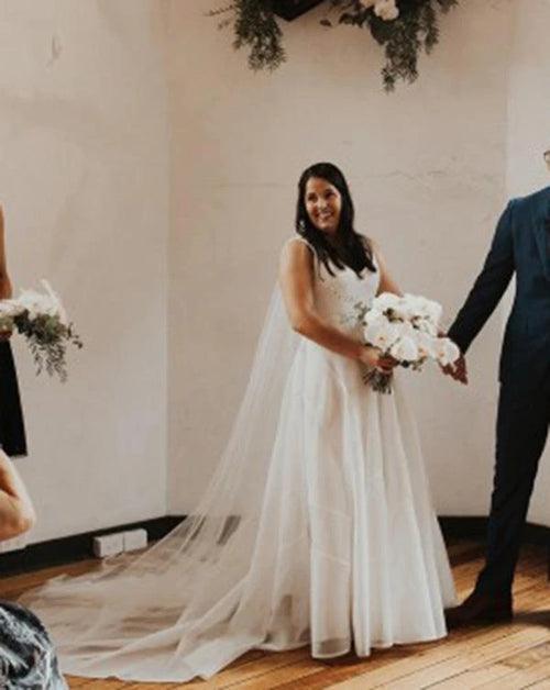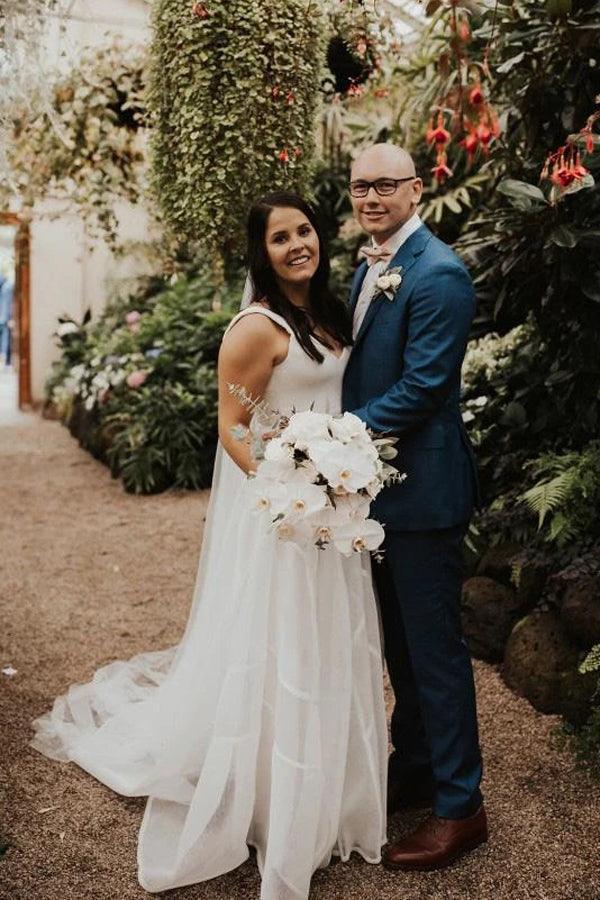 Schlichtes Chiffon A-Linie V-Ausschnitt Sweep Schleppe Ärmelloses Brautkleid.MW446