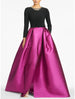 Vestido de noche de corte A con abertura alta para invitada de boda, vestido formal de otoño, largo hasta el suelo, manga larga, contraste de color, cuello joya, satén con abertura de cristales