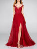 Vestido de noche de corte A, vestido de fiesta, vestido navideño rojo y verde, vestido de compromiso, baile de graduación, cola de corte, sin mangas, cuello en V, gasa con apliques de abertura