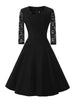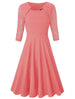 Vestido de fiesta minimalista elegante de corte A para cóctel, boda, invitada, escote joya, manga 3/4, largo hasta la rodilla, encaje de algodón con volantes