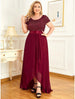 Vestido de noche formal elegante de corte A, talla grande, para regreso a casa, cuello joya, manga corta, gasa asimétrica con lentejuelas