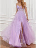 Vestidos de fiesta de corte A, transparentes, formales, con cola larga, sin mangas, escote corazón, de tul, sin espalda, con apliques de abertura y cuentas
