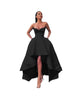 Vestidos de fiesta de corte A, sexys, asimétricos, sin mangas, hombros descubiertos, con bolsillos de satén