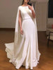 Vestidos de novia casuales, corte A, escote redondo, sin mangas, cola larga, tejido elástico, con faja o cinta.