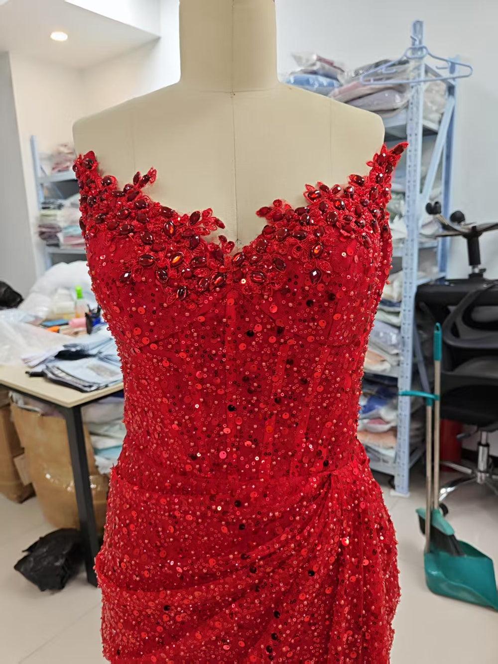 Elegant & Luxurious V-Neck Sleeveless Sequins Side Slit Sheath Evening Party Prom Dress