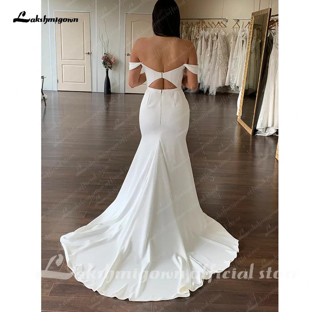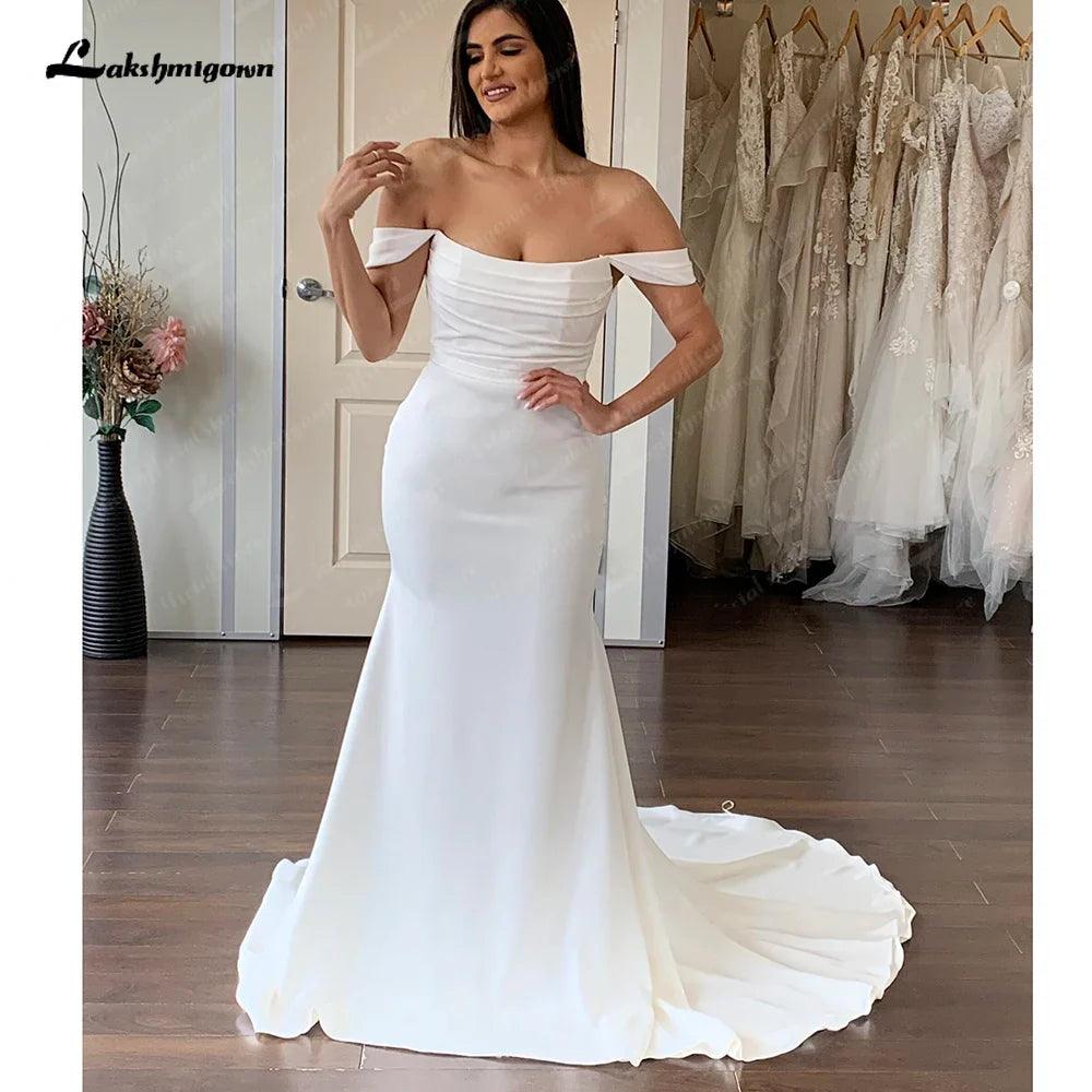 NumberSea Vestidos de novia de sirena plisados sencillos 2025 Cuello barco Sin espalda Vestido de novia bohemio Blanco roto Vestido de boda